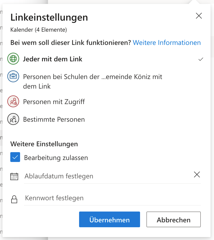 Beim Teilen kann die Berechtigung des Empfängers eingestellt werden: