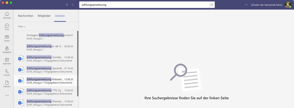 Im Programm Teams sind viele Dateien abgelegt. Daher ist es nicht immer ganz einfach ein bestimmtes Dokument zu finden.