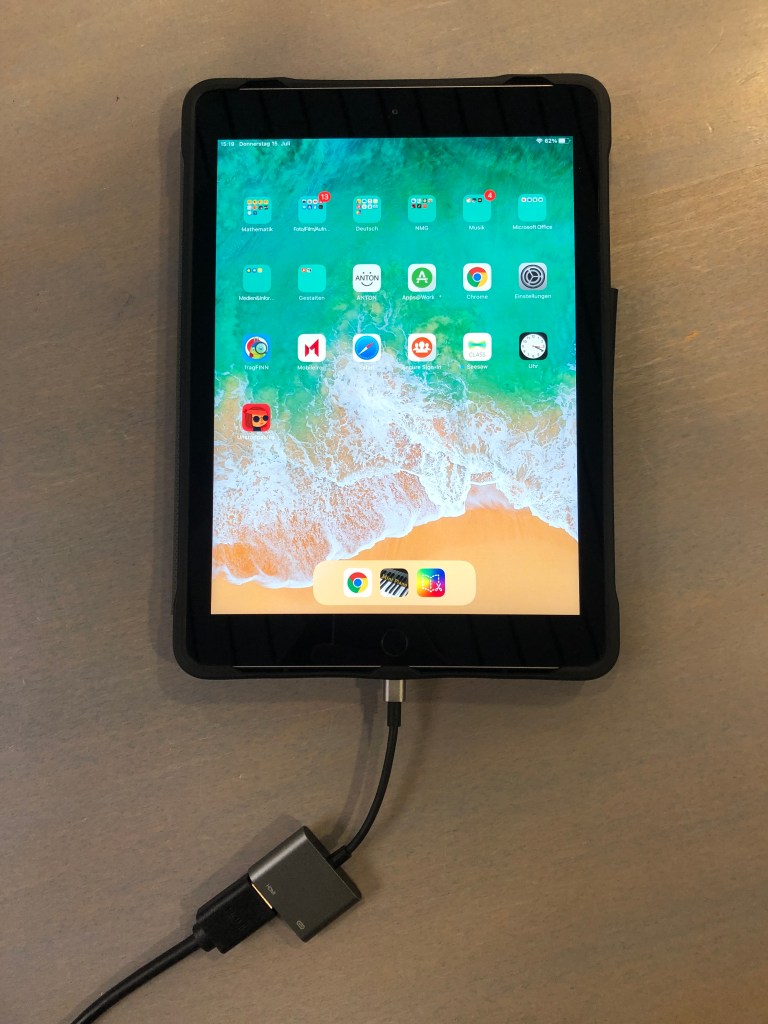 Die iPads werden per Kabel an die Beamer angeschlossen.